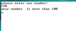 پس برنامه ی بالا یک عدد را از ورودی میگیرد و اگر عدد وارد شده بزرگتر از 100 بود پیغام متناسب با آن را چاپ می کند و در غیر این صورت پیغام مناسب دیگری را چاپ می کند.