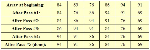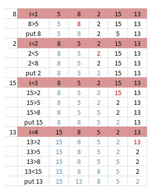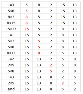 این کار را برای تمام خانه های آرایه( غیر از آخرین خانه که به مقایسه ای احتیاج ندارد) انجام می دهیم.