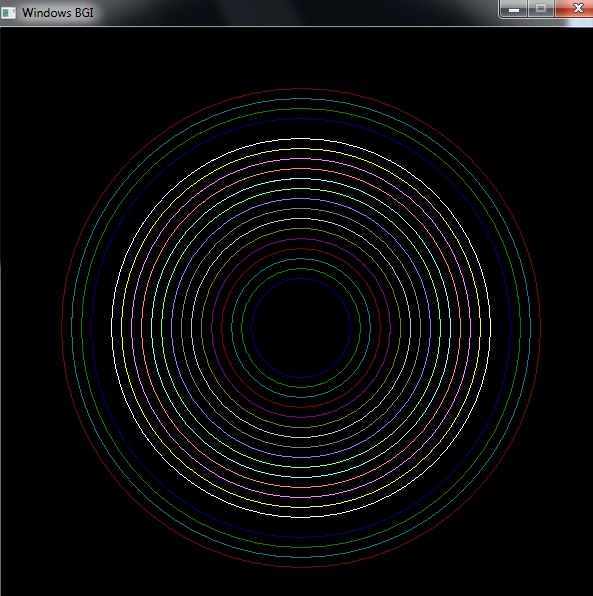 مثال 3: برنامه ای بنویسید که در گرافیک، 20 دایره ی متحدالمرکز را با افزایش شعاع رسم کند:
