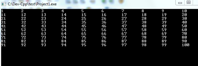 برنامهی زیر از یک تا صد را در خروجی نمایش میدهد: